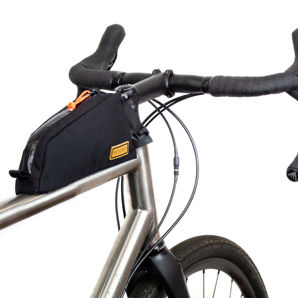 Whether you're out for an hour commuting or on a multi-day tour the Restrap Bolt-on Top Tube Bag is perfectly designed to keep your tools and snacks within reach. Made from 100% waterproof textured nylon and with a tough YKK zip it will withstand whatever your ride throws at it.