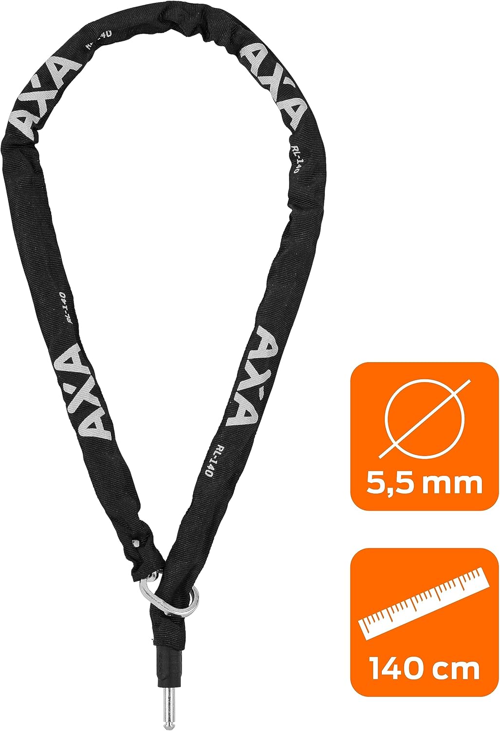 [Reliable] The RLC chain has hardened steel links (diameter 5.5 mm) and a locking bolt (diameter 10 mm). The chain is extra long at 140 cm. This allows you to easily attach the wheel anywhere.