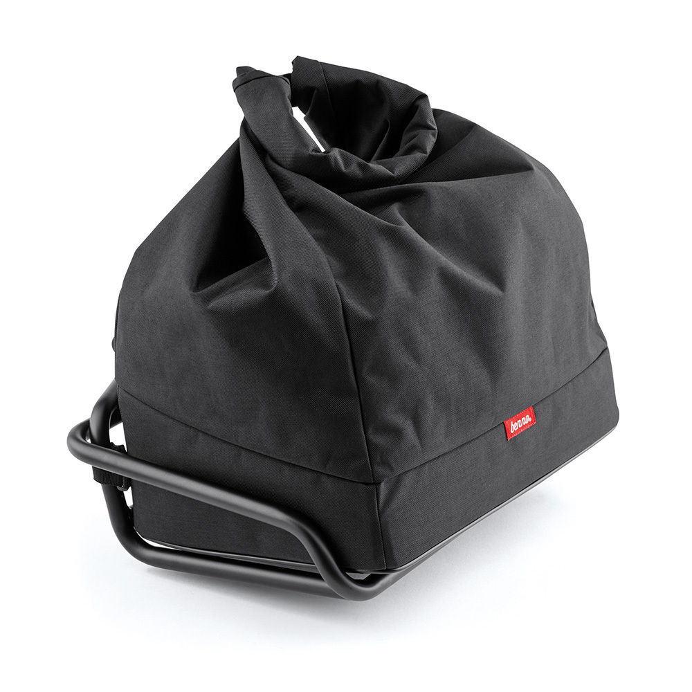 This extra-durable bag is designed to fit in the Benno Utility Front Tray. It installs easily with four Velcro tabs, helping you carry and secure a variety of different loads. Its unique, versatile design gives you multiple options: Close the top and fold it over onto the Velcro strips, roll the top and secure the plastic fastener or cuff the sides and use it like an open basket.