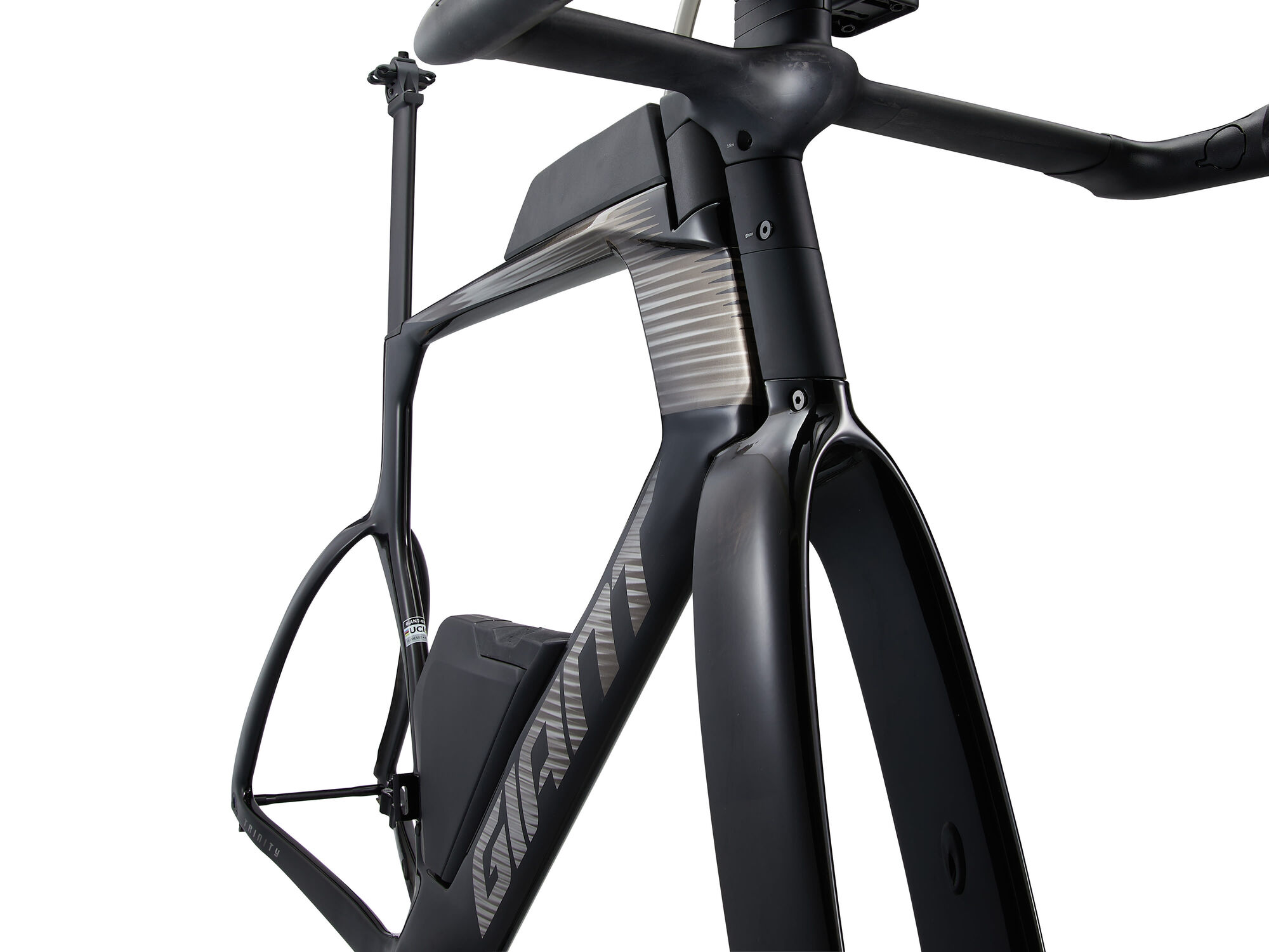 Sizes XS, S, M, LColours Gloss Carbon/ChromeFrame Advanced SL-Grade Composite, 12x142mm thru-axle, discFork Advanced SL-Grade Composite, full-composite steerer, 12x100mm thru-axle, discHandlebar AeroDrive base bar with Sync armrest set, 10 and 15 degree extension wedgesGrips TrinityStem AeroDrive integrated stemSeatpost Trinity CompositeArm Rest Kit Sync armrest setExtras Bento box top tube storage, hydration kit, computer mount, 30mm max tyre sizeMax Tyre Clearance 30mm