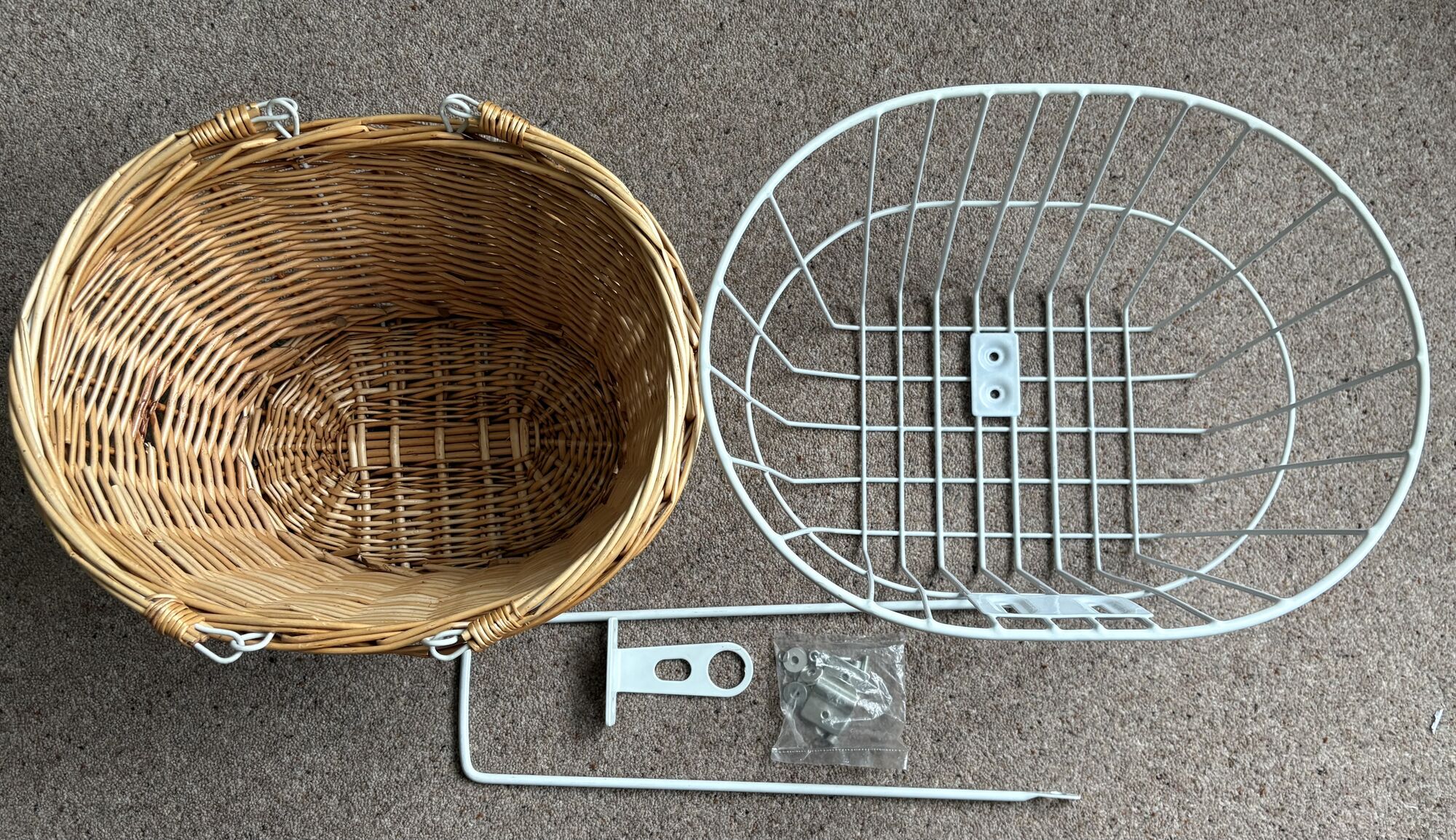 Standard White Basket Kit + Wicker Basket for Vintage Bikes