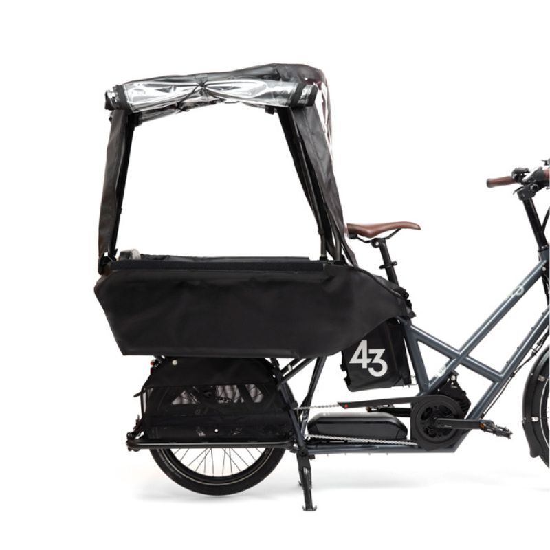 Ensure your little adventurer stays dry and happy during unexpected rain showers. This innovative canopy for the Bike 43 longtail cargo bike lifts up with the roller coaster for easy onboarding onto the bike.